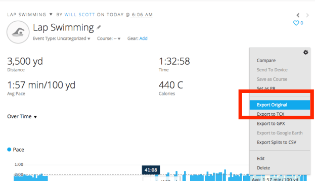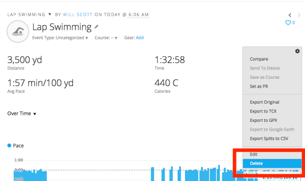Once you’re done manipulating the file, you can re-upload it to Garmin Connect. One caveat is that you have to delete the original before uploading. This is pretty scary the first time you do it, but great news is if you followed the steps above you’ve got the file on your computer.