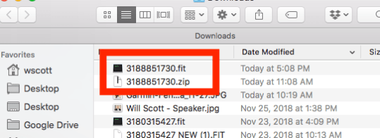 The output from the Garmin Fenix 3 HR by way of the Garmin Connect web app is a “.fit” file.