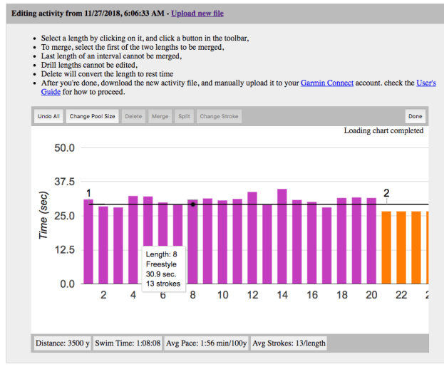 From here, you can start to use Swimming Watch Tools to manipulate the data. The site has a pretty extensive User’s Guide, but I’ll go through some quick basics.