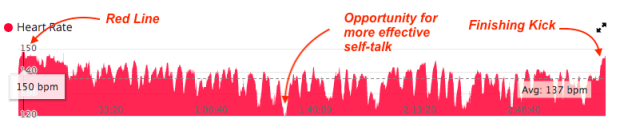 There were definitely times on the run where I needed some positive self talk. I reminded myself that my heart rate wasn’t that high and nothing really hurt that badly. My “positive” self-talk is still a little too self-berating and I think may need some work.