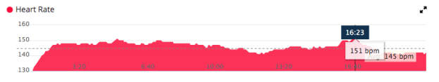 For context, 150 is redline for me. If I hit that in a workout for any extended period the rest of the workout suffers. In prior long-course swims I’ve been super-careful to not even breathe heavy so going out hard and having greater comfort in the water may have made me overconfident.