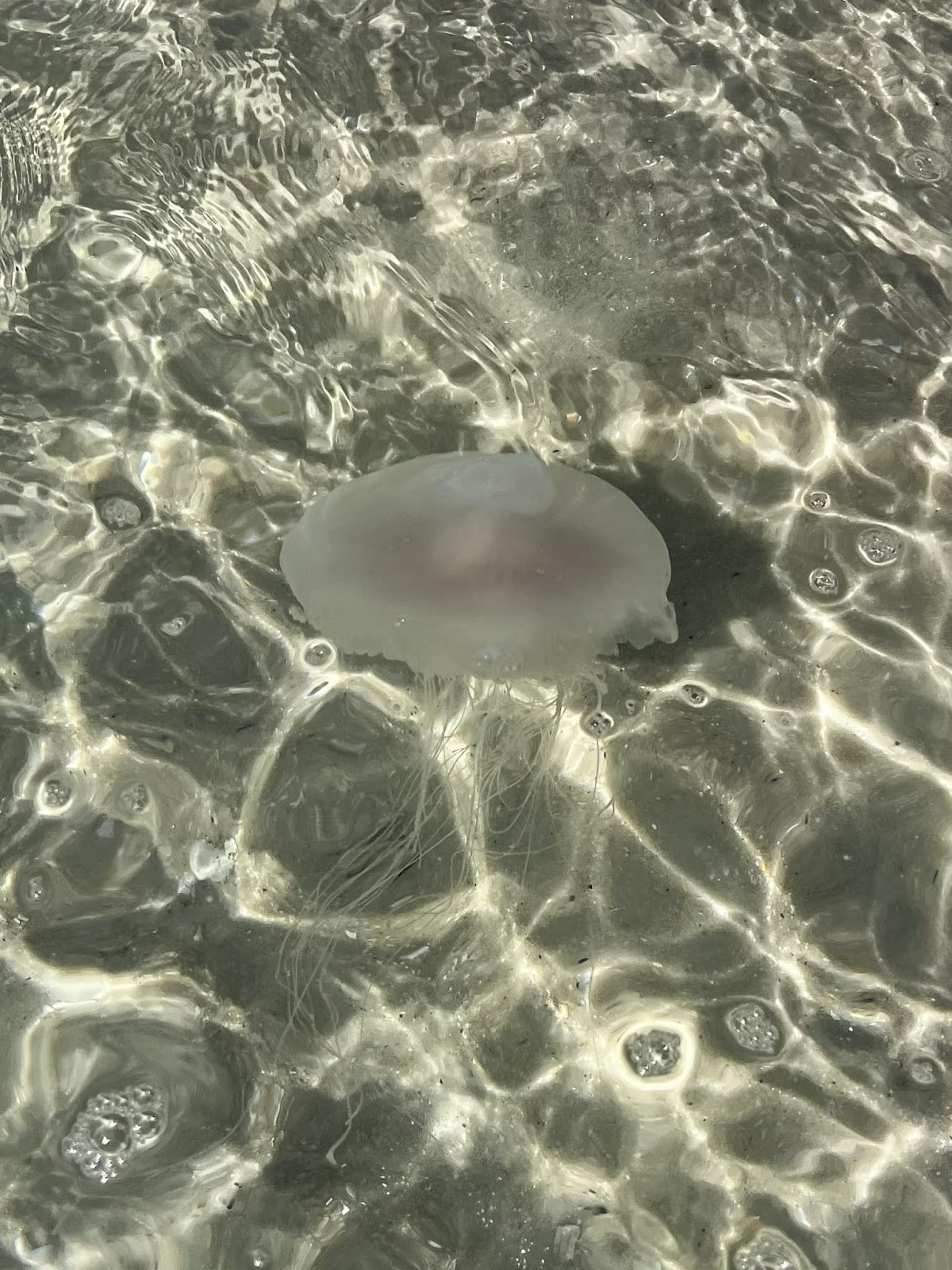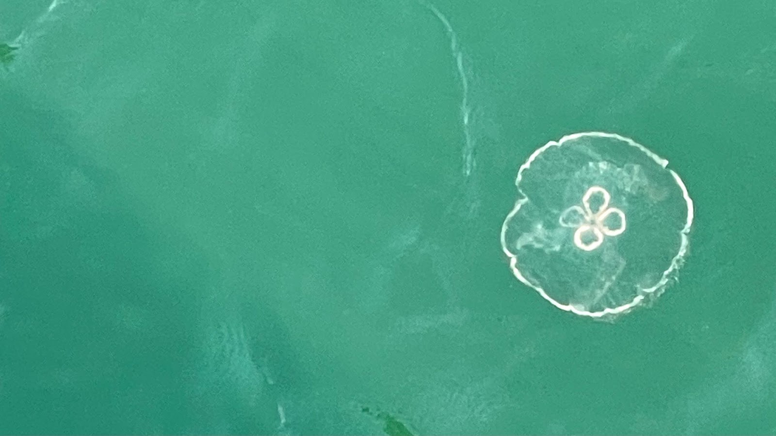 Clear enough to get a great view of the jellyfish. There were a LOT of jellyfish. Most were harmless little blobs that you could swim through pretty easily – and with a full-sleeve wetsuit were more freaky than harmful.
